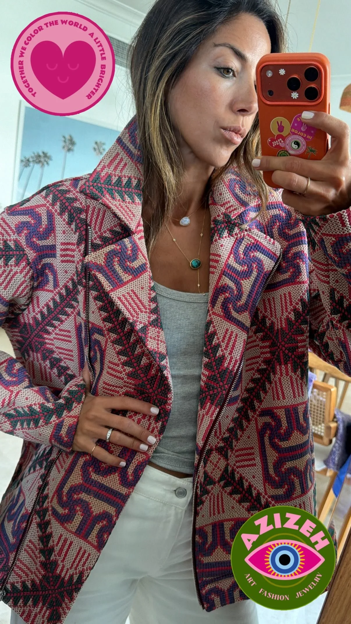 Every piece is made in small quantities using vintage, artisan and customized fabrics that I personally source. Jackets are one-of-a-kind, and I want each one to go directly to the woman who connects with it, not sit in bulk inventory.